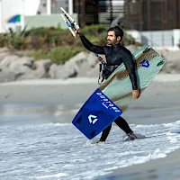 Большая площадь носовой части облегчает водный старт даже при слабом ветре. Плоский рокер снижает сопротивление, позволяя скользить легко и комфортно. В конструкции используются экологичные материалы — лен для отличного гашения вибраций и базальтовые стрингеры, которые обеспечивают прочность, гибкость и высокую отзывчивость доски.
