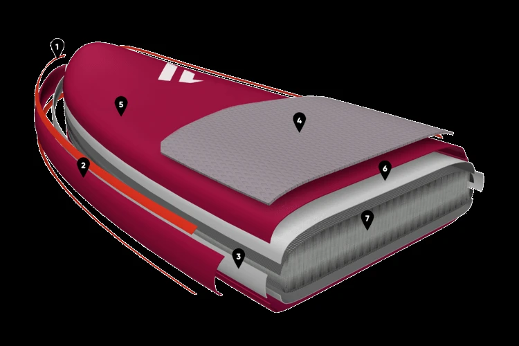 Доска построена в конструкции Premium Double Layer, поставляется с практичным рюкзаком на колесиках, в котором есть место для доски, подводного крыла, винга и насоса двойного действия, который вы можете использовать для надувания как вашей доски, так и крыла винг.